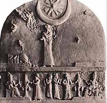 穆罕默德说:“看啊,你们已经相信月神安拉是众神中最伟大的神,但我要你们接受安拉是唯一的神。我不是要把安拉拿走,只是要把安拉的妻子、女儿们和其他的神拿走。”下图是在阿拉伯地区发现的安拉塑像,注意在胸前的新月形。